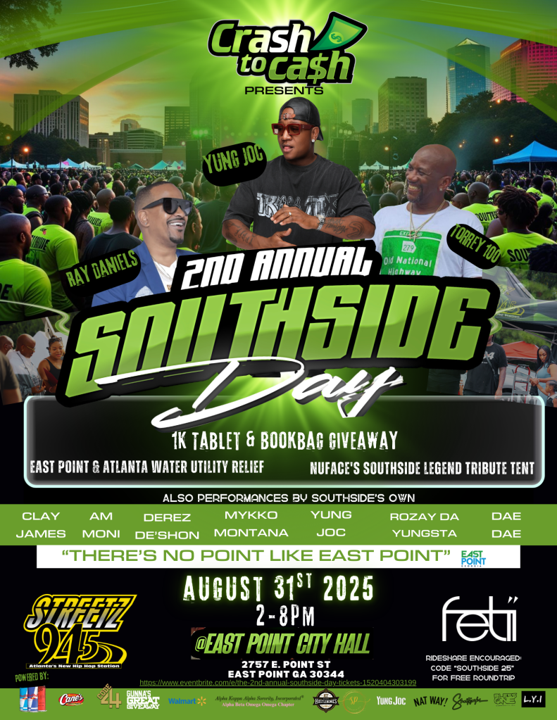 Atlanta’s Southside is no stranger to star power, but on Sunday, August 31, 2025, the spotlight won’t just be on the music—it’ll be on the community. The 2nd Annual Southside Day, presented by Yung Joc, Torrey Tomlinson (Torrey 100), and Ray Daniels, is set to transform East Point City Hall into the ultimate block party.